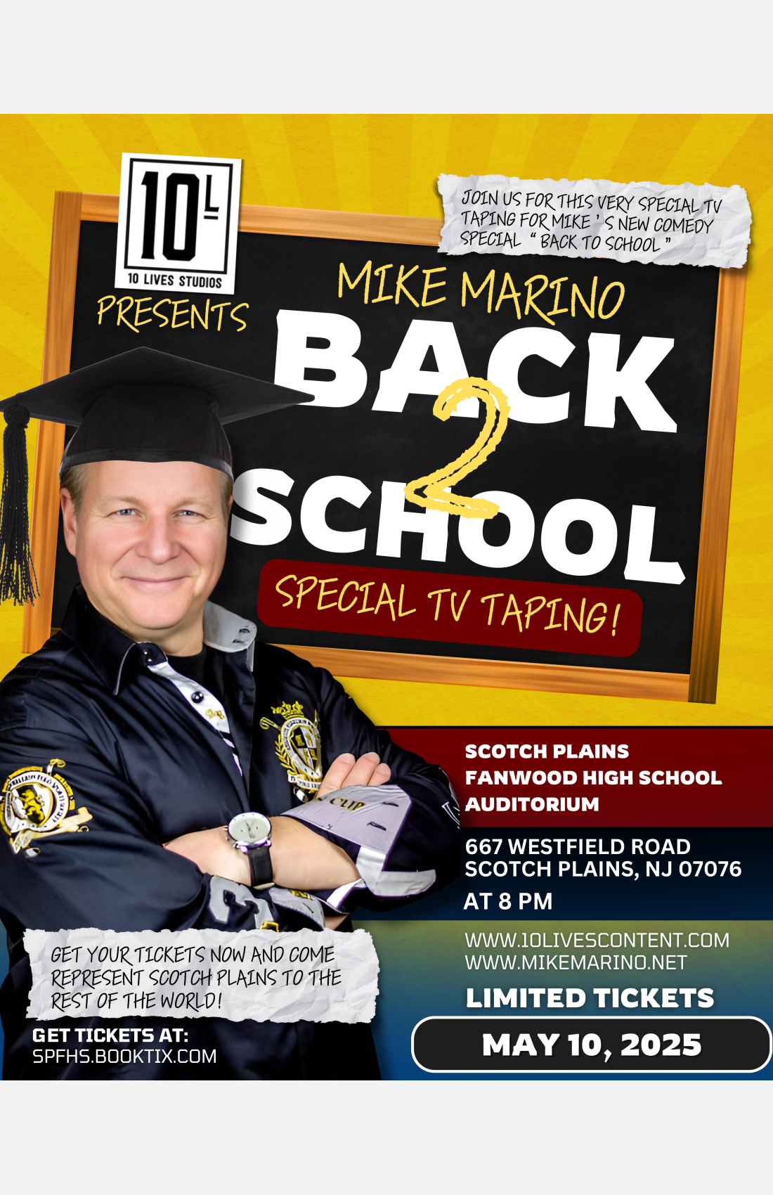 Get ready to laugh your hall passes off! New Jersey’s own comedy king, Mike Marino, is storming back to his old stomping grounds at Scotch Plains-Fanwood High School for a night of hilarious chaos. This isn’t just a comedy special—it’s a full-on homecoming with a side of detention-worthy one-liners. Known for his razor-sharp wit, larger-than-life Jersey swagger, and stories that hit you right in the nostalgia, Mike’s bringing the funny to the halls where it all began. Expect a wild ride through his teenage misadventures, Italian-American family antics, and enough laughs to make you wish you’d paid attention in class. Grab your tickets now—this is one reunion you won’t want to ditch! Get your tickets at spfhs.booktix.com